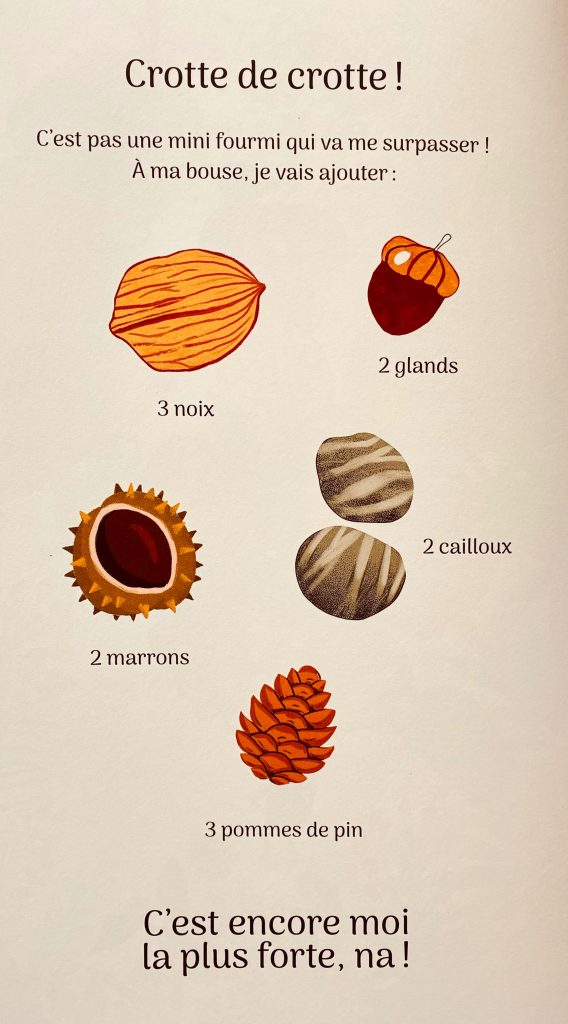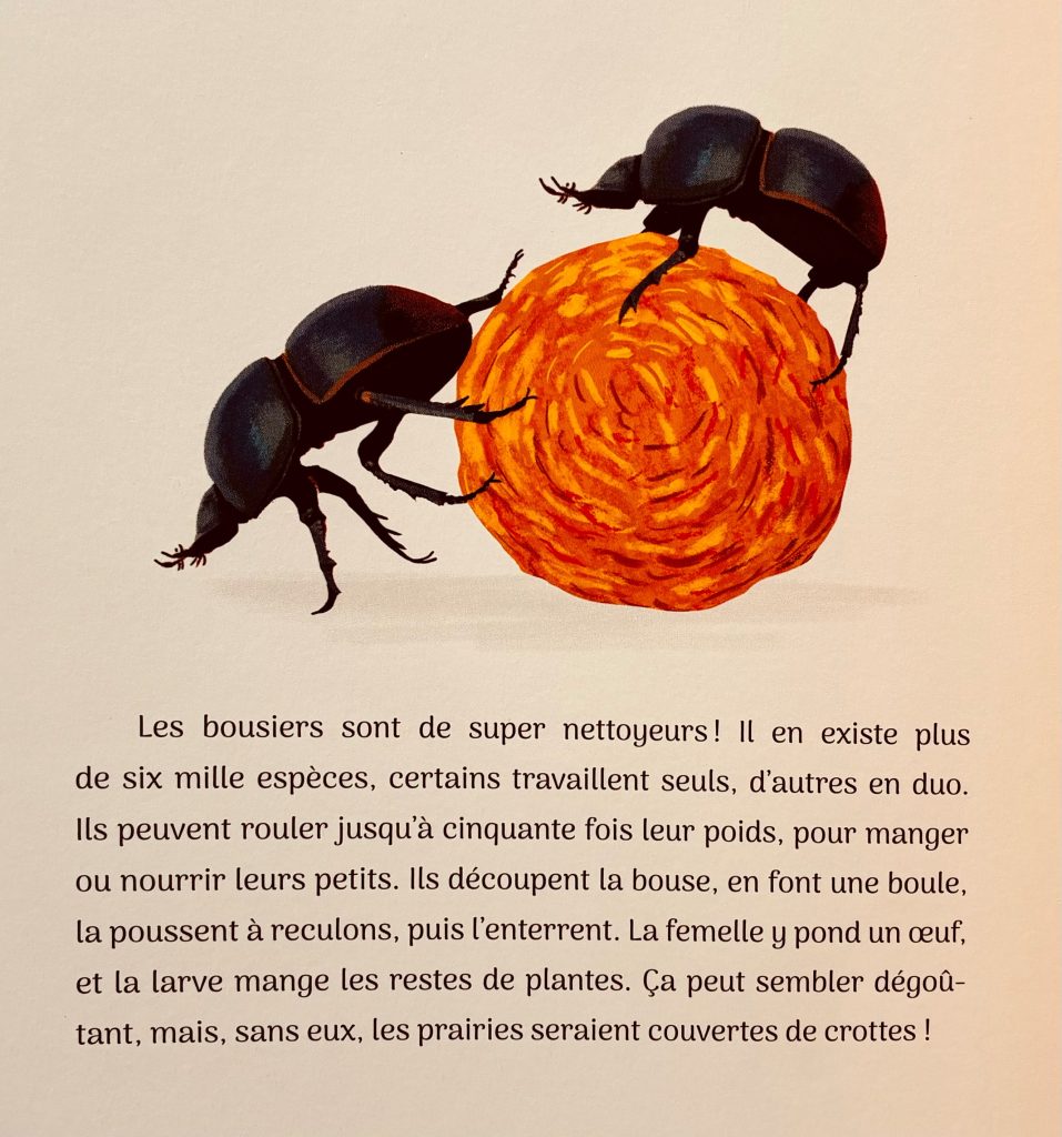 C’est moi Boubouse la plus forte ! est un album de Peggy Nille dont l’héroïne est une bousière, pleine d’énergie et très sûre d’elle.