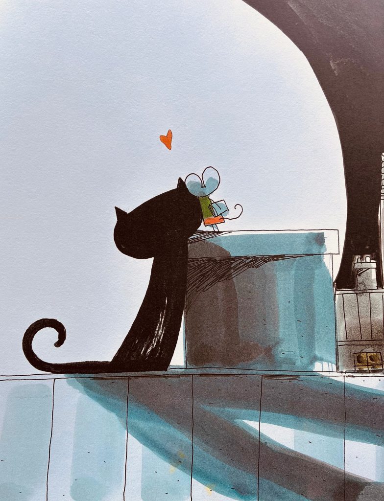 Mais ce gros chat, s’arrête finalement pour l’écouter plutôt que pour la croquer ! Comme quoi, la lecture peut sauver des vies 😉